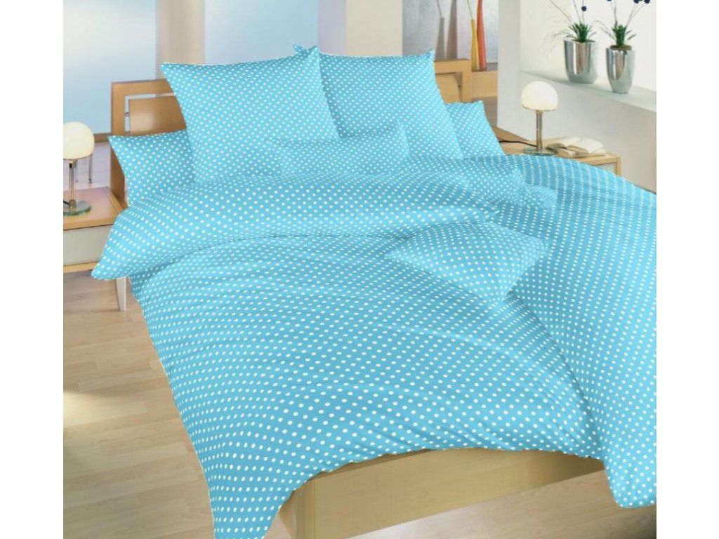 Bavlněné ložní povlečení- Puntík bílý na sv.modrém
