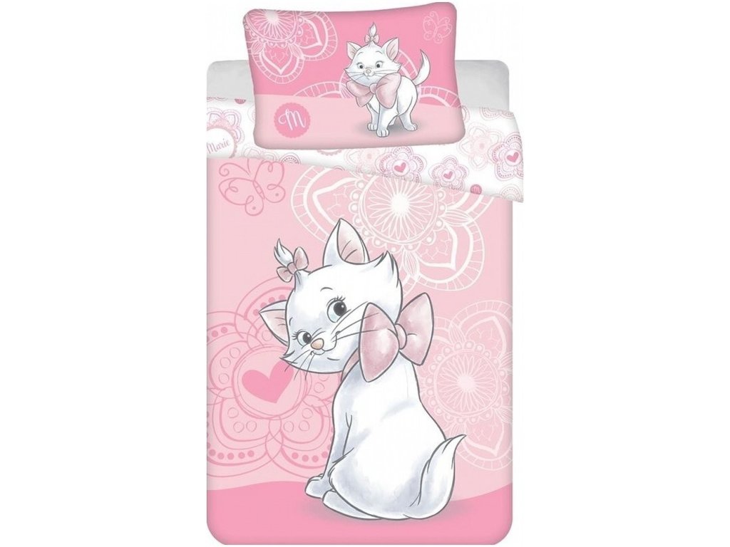 Povlečení je zdobeno obrázky kočky Marie v různých hravých pozicích, doplněné o jemné květinové vzory a pastelové barvy. Na polštáři je vyobrazena Marie s mašlí, což dodává celému setu šarm a půvab. Toto povlečení je ideální volbou pro všechny malé milovníky koček a zajistí jim pohodlný a klidný spánek.