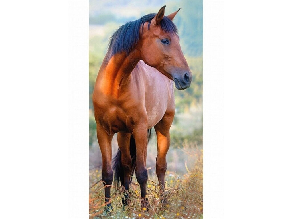 Objevte krásu přírody s dětským ručníkem Kůň hnědák na louce, který okouzlí všechny malé milovníky zvířat. Realistické ztvárnění koně v klidném přírodním prostředí přináší nejen estetický zážitek, ale i praktičnost v každodenním použití.