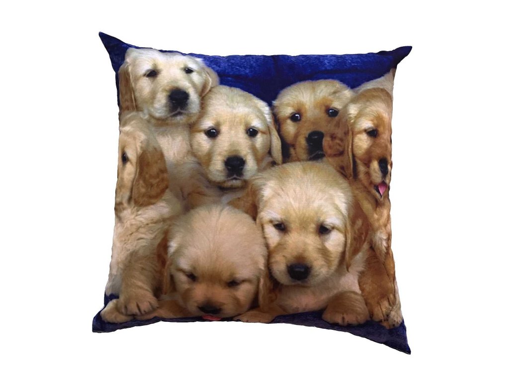 Neodolatelně roztomilý polštářek s fototiskem několika hlaviček štěňat plemene Golden Retriever. Štěňátka jsou natištěna těsně vedle sebe, což vytváří dojem hebkého klubíčka plného něhy a radosti.