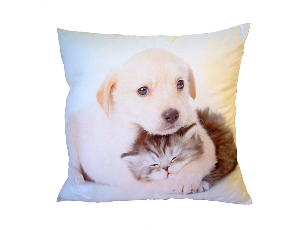 Fotopolštářek Pejsek objímající kotě 40x40 cm