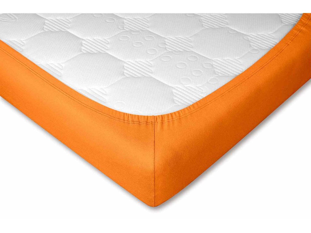 Napínací jersey prostěradlo v pomerančové barvě je ušito z kvalitní směsi 95 % česané bavlny a 5 % elastanu. Tato kombinace zajišťuje vysokou pružnost, rozměrovou stálost a dokonalé přilnutí k matraci. Hladký jersey materiál je příjemný na dotek a ideální pro celoroční použití.