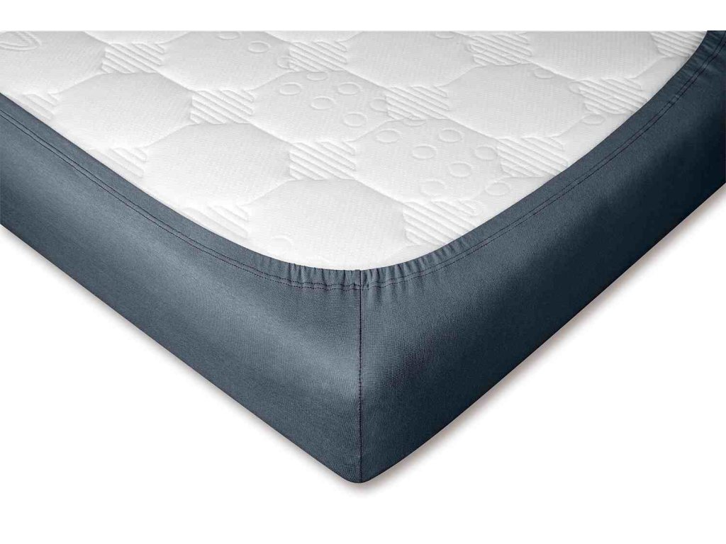 Napínací jersey prostěradlo v tmavě šedé barvě je ušito z kvalitní směsi 95 % česané bavlny a 5 % elastanu. Tato kombinace zajišťuje vysokou pružnost, rozměrovou stálost a dokonalé přilnutí k matraci. Hladký jersey materiál je příjemný na dotek a ideální pro celoroční použití.