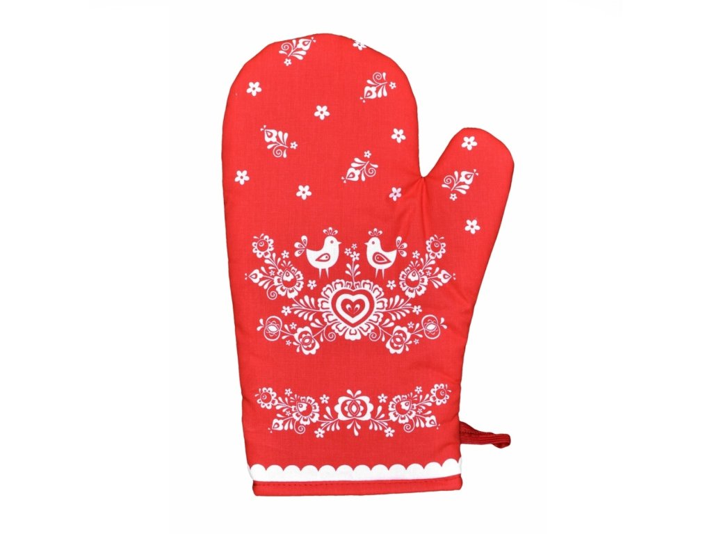 Kuchyňská chňapka Folk podklad červený 1 ks 18x28 cm