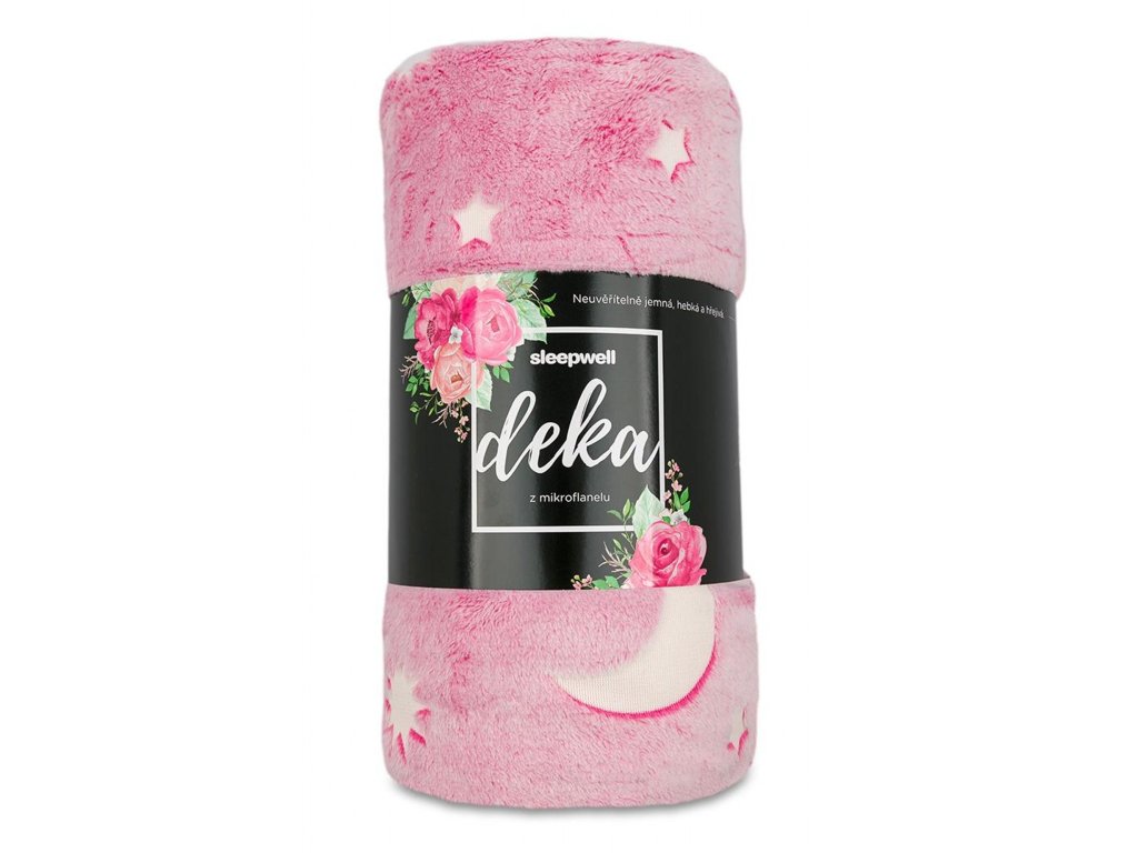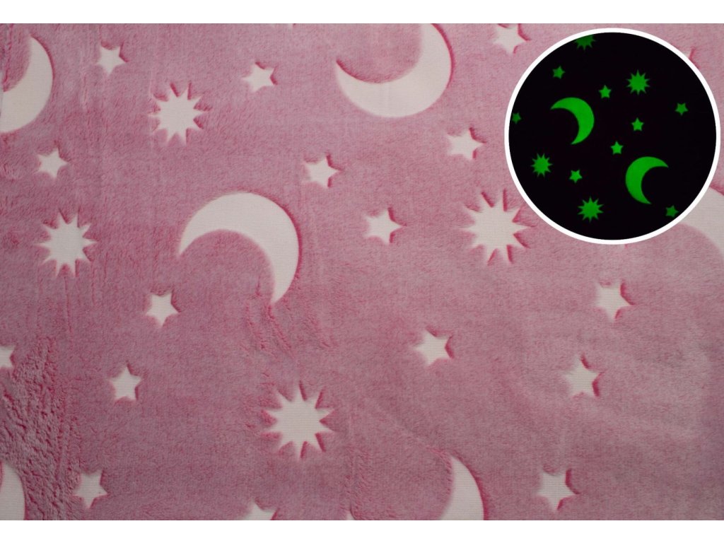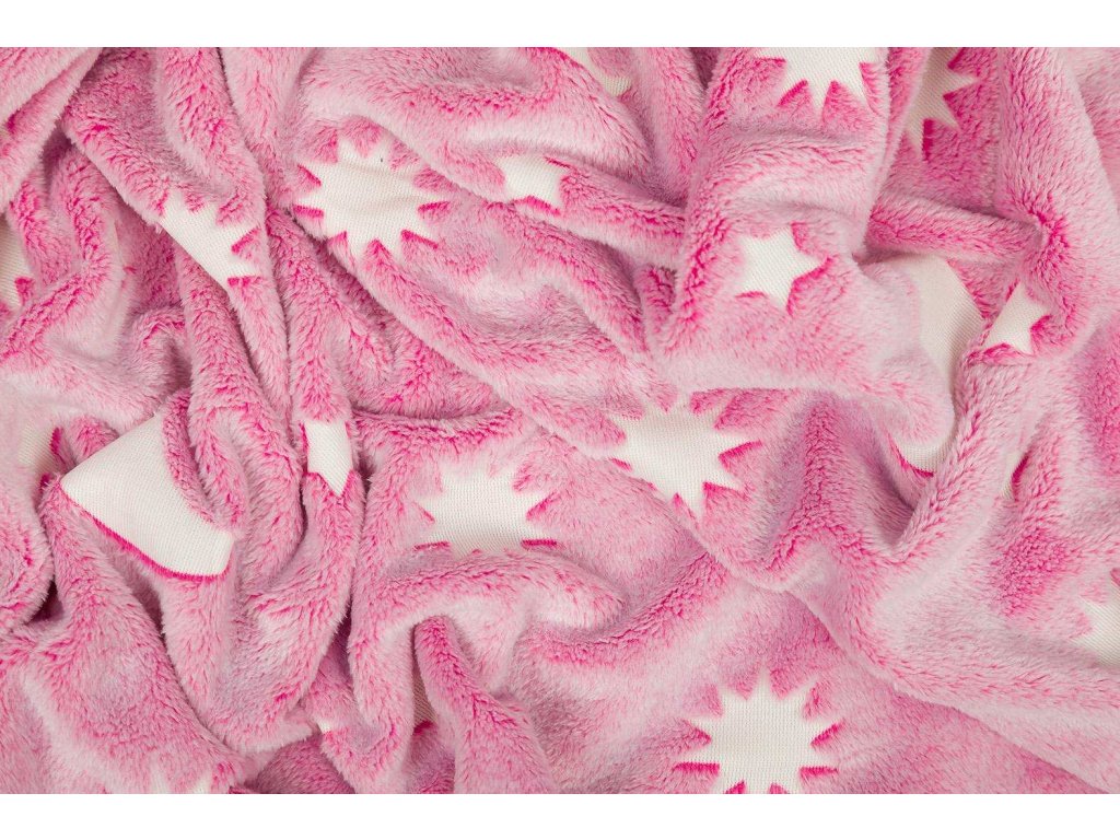 Mikroplyšová svítící deka Hvězdy růžové 150x200 cm