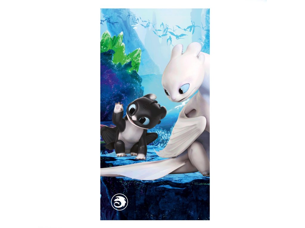Stylová osuška s motivem draka Bezzubky z oblíbené filmové série Jak vycvičit draka. Rozměr 70×140 cm, jemné a savé bavlněné froté. Ideální pro děti i teenagery – do koupelny, na pláž nebo jako dárek.