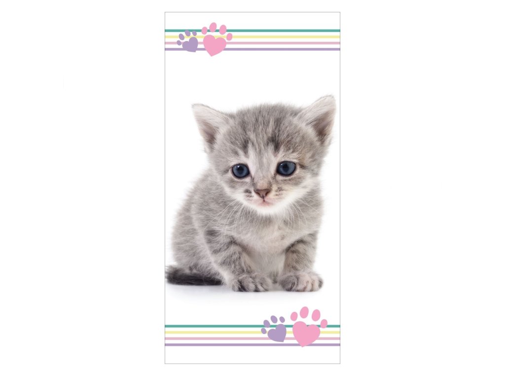 Zachumlejte se do hebké bavlněné osušky s roztomilým šedým kotětem a decentními duhovými proužky s tlapkami. Tato osuška potěší všechny dětské milovníky zvířat a zpříjemní každé koupání i den na pláži.