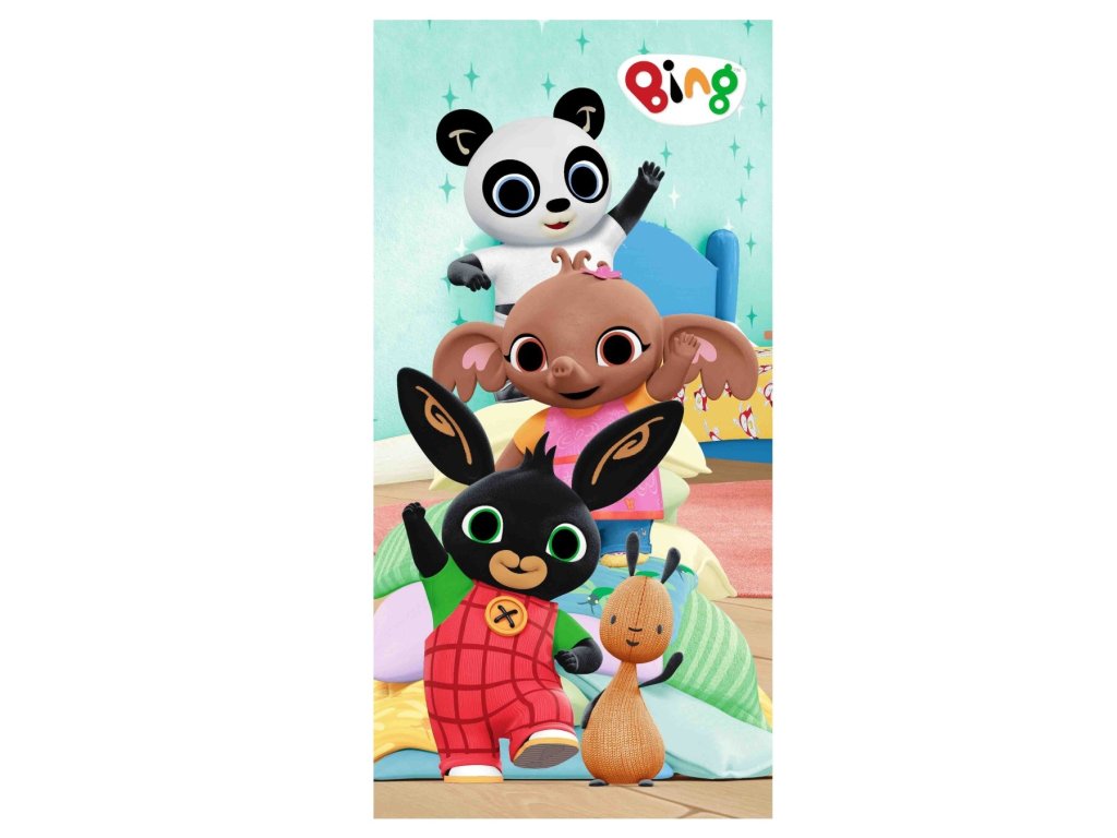 Veselý motiv s postavičkami z oblíbeného dětského seriálu Bing – králíček Bing, Sula, Pando a Flop na světle zeleném pozadí s hvězdičkami. Ideální pro malé fanoušky.