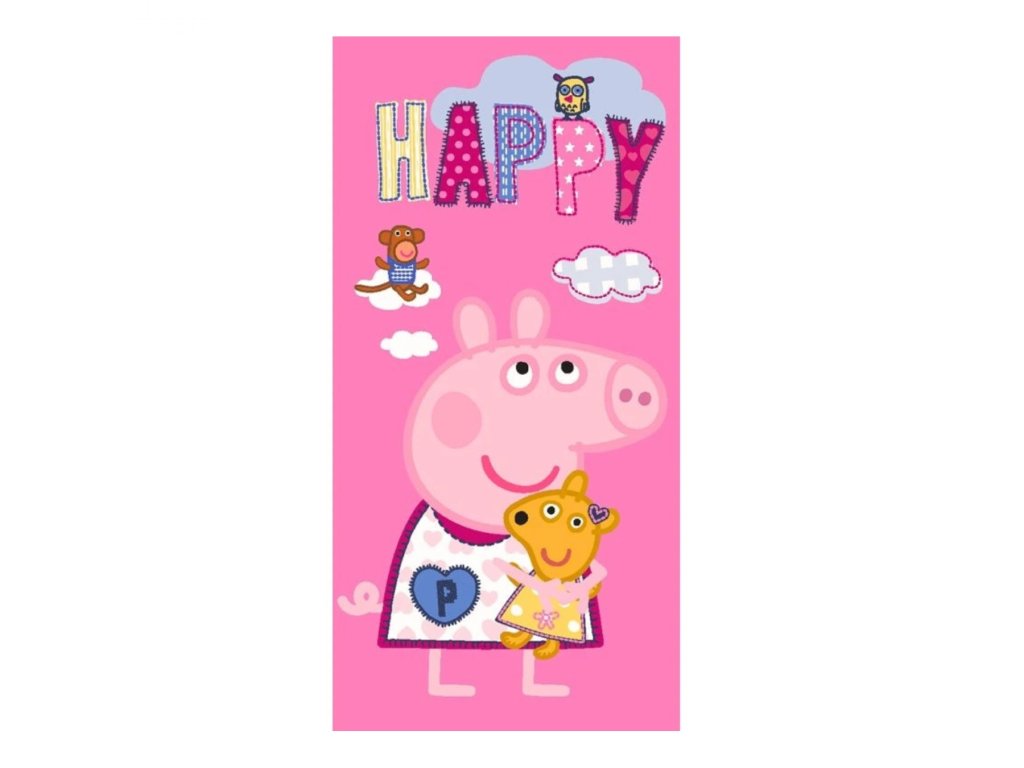 Přineste radost a pohodlí do každodenní hygieny s osuškou Prasátko Pepina a Medvídek Teddy. Oblíbená postavička Pepina drží svého plyšového kamaráda a září štěstím pod nápisem "HAPPY".