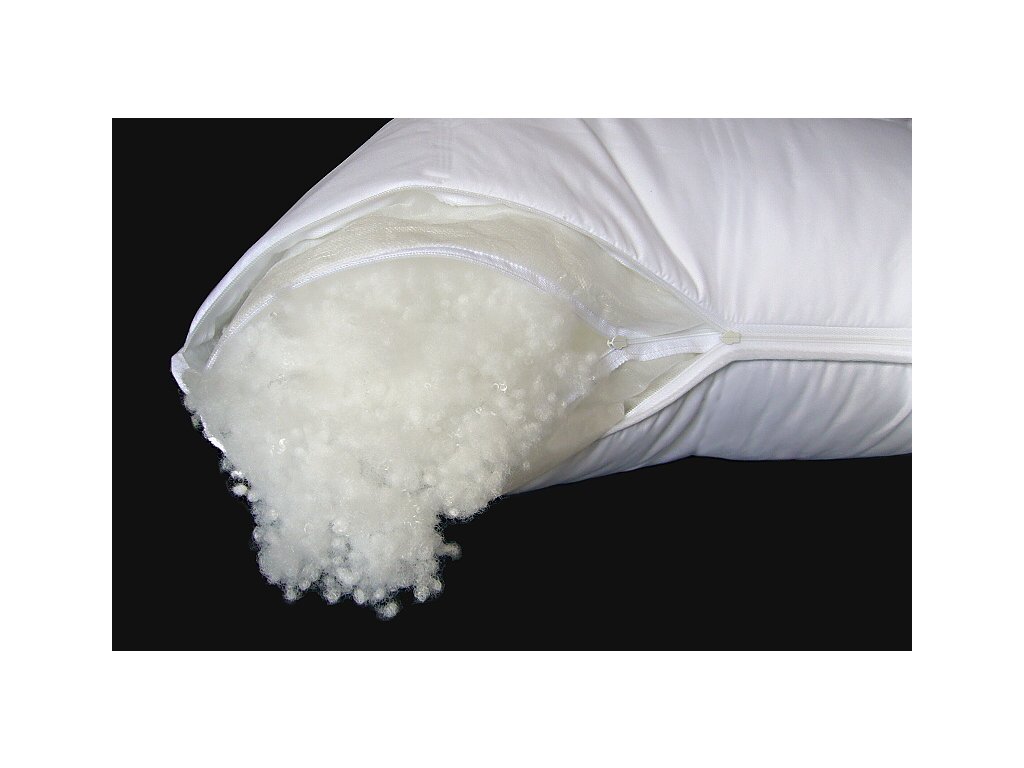 Polštář je tvořen dvěma vrstvami – vnějším povlakem a vnitřním vakem s náplní. Povlak je opatřen zipem, takže jej lze snadno sundat a vyprat samostatně. Vnitřní vak je rovněž uzavíratelný na zip, což umožňuje regulaci množství výplně podle individuálních potřeb.