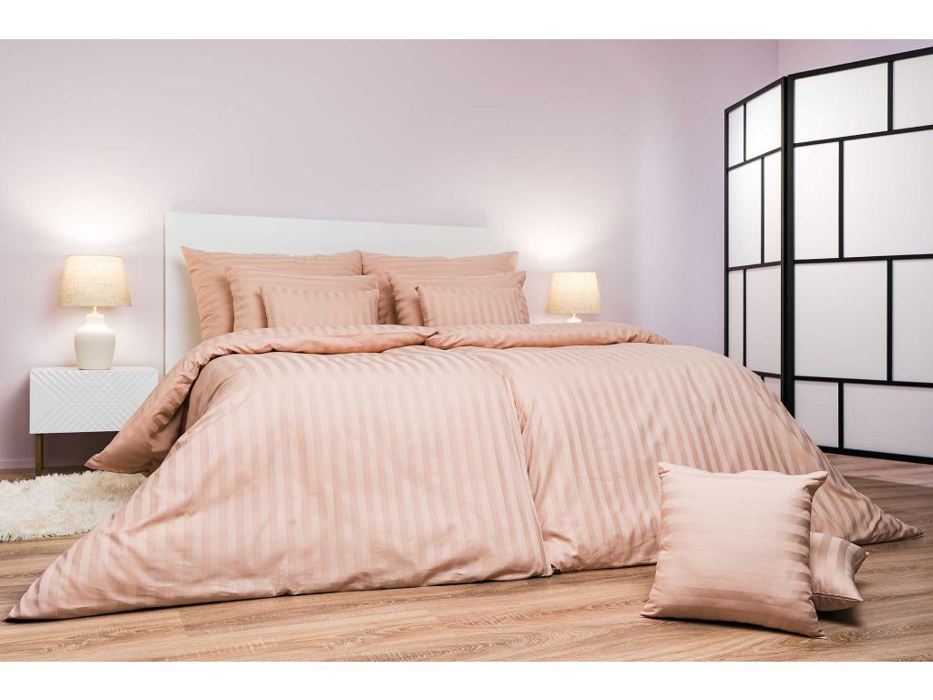 Povlečení atlas grádl béžový proužek 2 cm 140x200, 70x90 cm