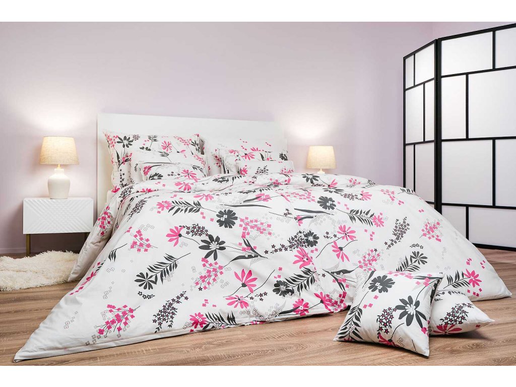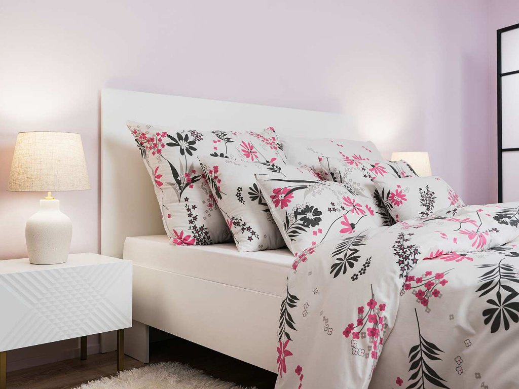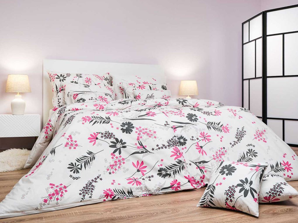 Komfortní ložní prádlo s jemným květinovým vzorem v růžové a šedé barvě na bílém podkladu přinese do vaší ložnice jemnost, romantiku a klid. Vzor Agáta růžová na bílém je exkluzivním designem z dílny českého výrobce DADKA VRACOV. Doporučujeme kombinovat s prostěradly v barvě bílá, světle šedá, tmavě šedá nebo stříbrná.