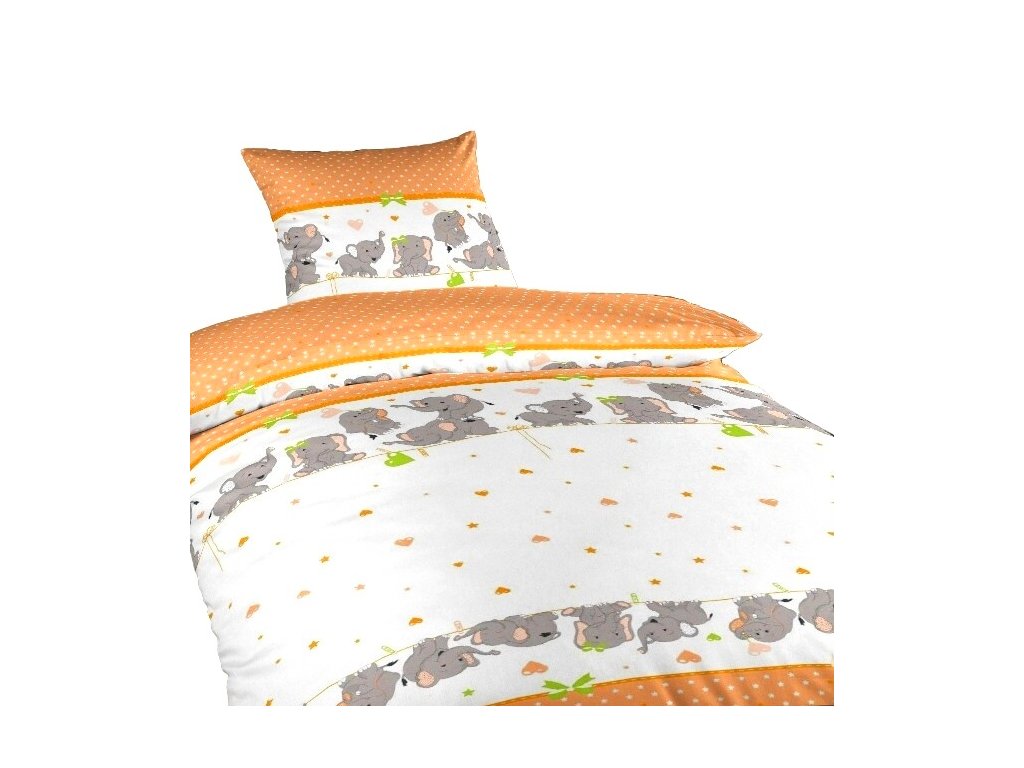 Povlečení bavlna do postýlky Sloni oranžoví 90x130, 45x60 cm
