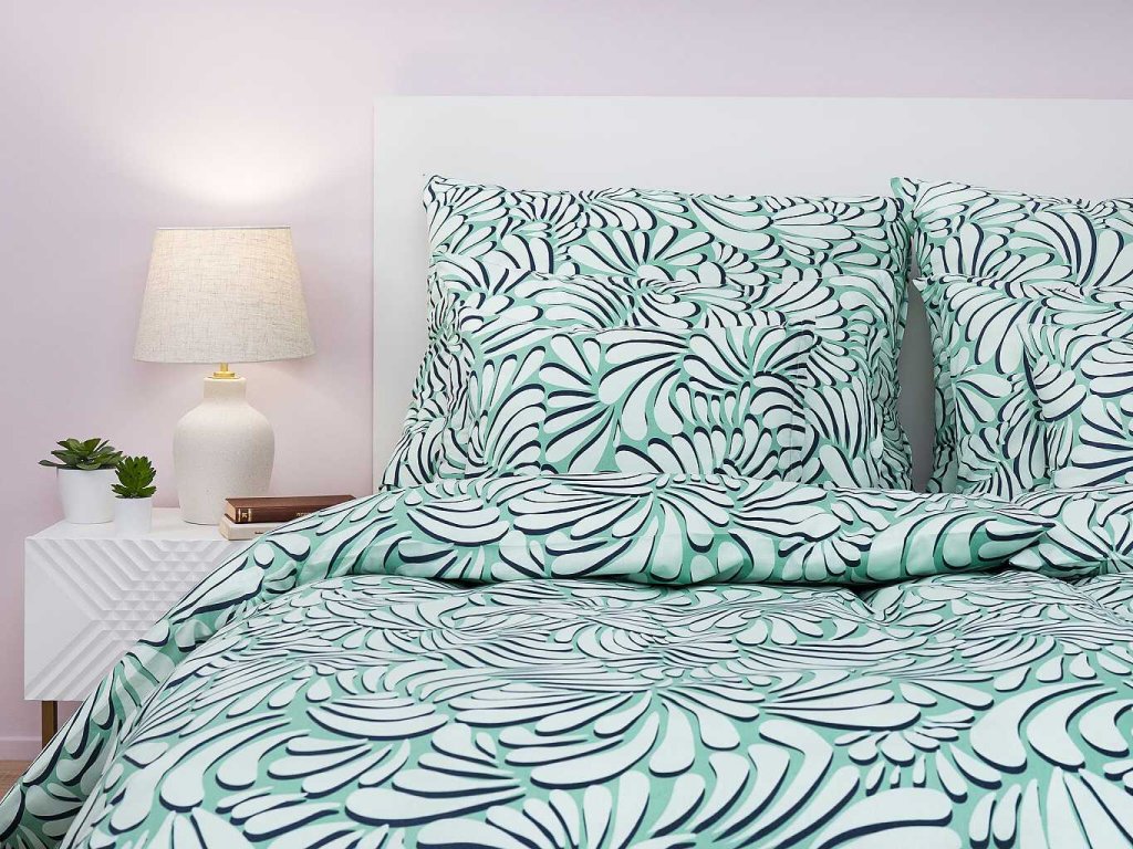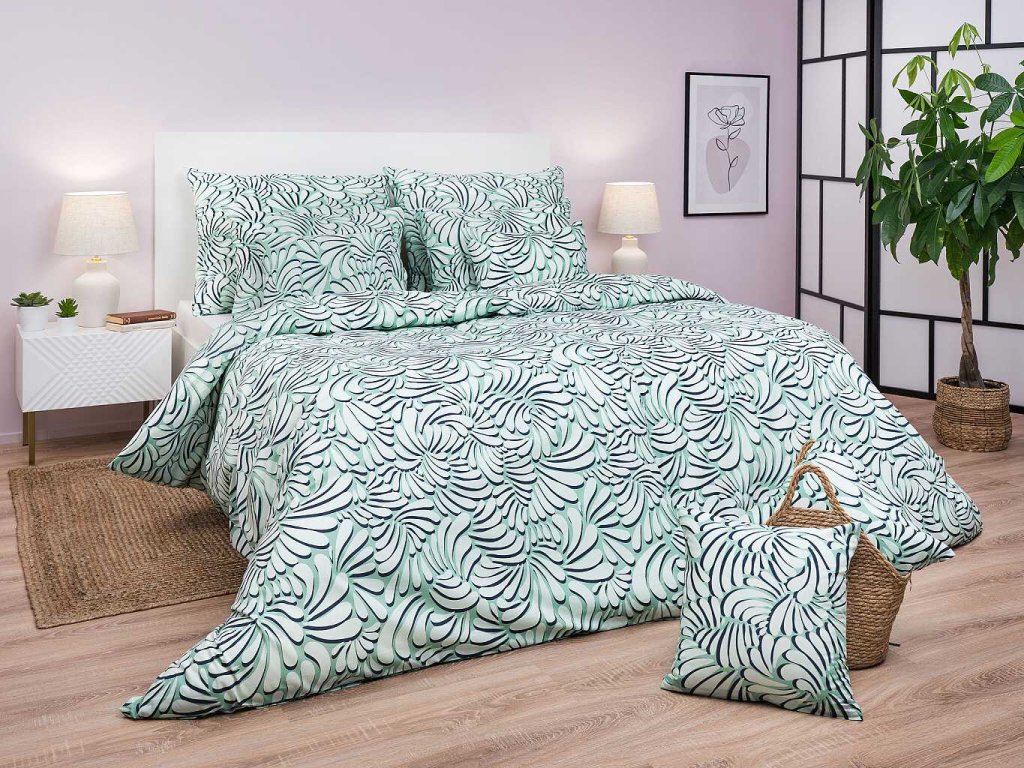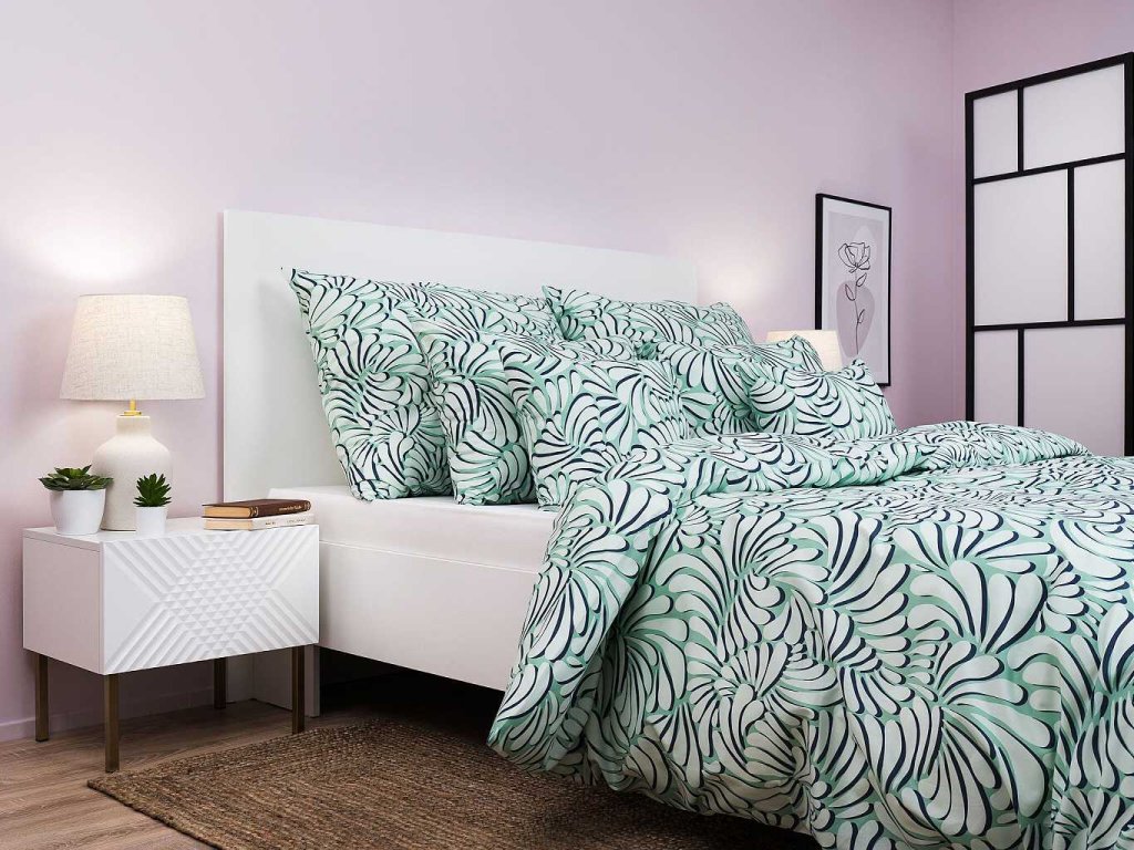 Moderní ložní prádlo Iluze 2 mentol s geometrickým vzorem v mentolové barvě přináší do ložnice svěží a klidnou atmosféru. Skvěle ladí s prostěradlem v barvě bílá, tmavě šedá nebo banánová. Vyrobeno v České republice firmou DADKA VRACOV.