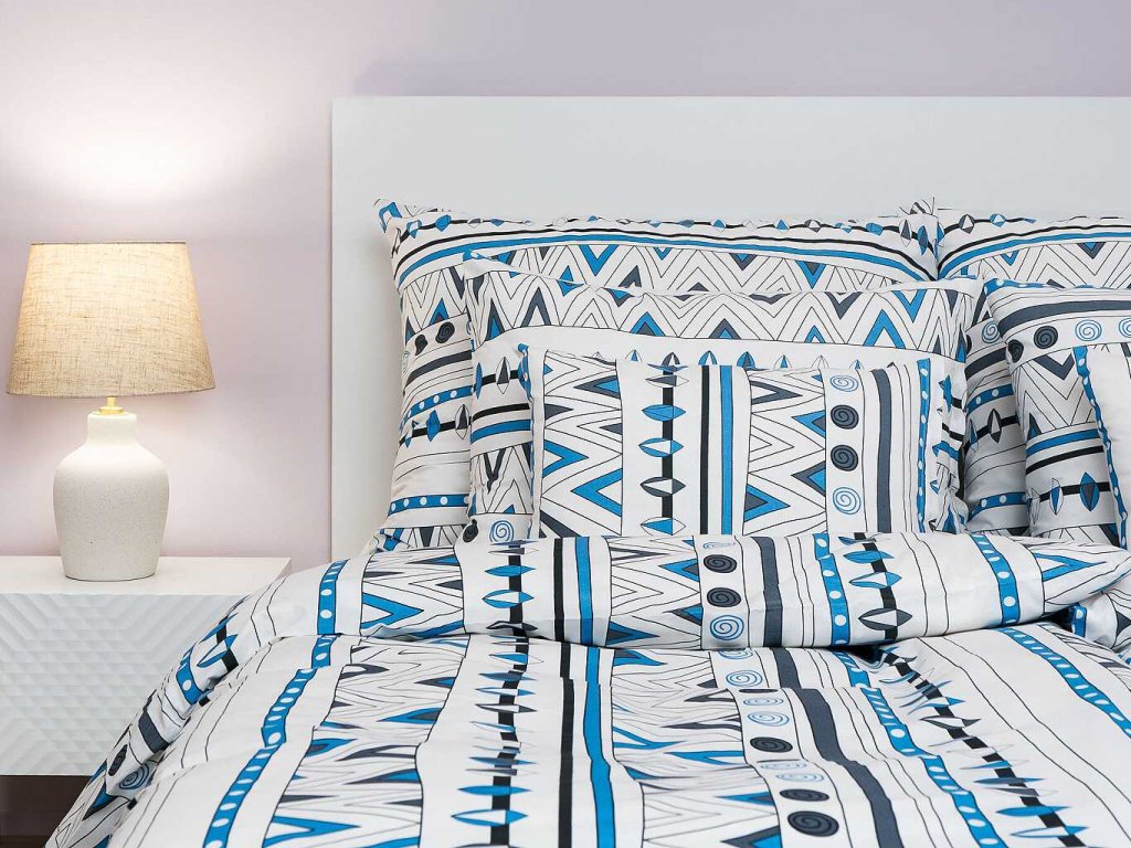 Stylové ložní prádlo Indián denim s výrazným geometrickým vzorem v odstínech modré, černé a bílé přináší do ložnice energii a originalitu. Motiv inspirovaný etnickými prvky v kombinaci s denimovým tónem působí moderně a zároveň tradičně. Povlečení doporučujeme kombinovat s prostěradly v barvě bílá, tmavě šedá, černá nebo denim. Vyrobeno v České republice firmou DADKA VRACOV.