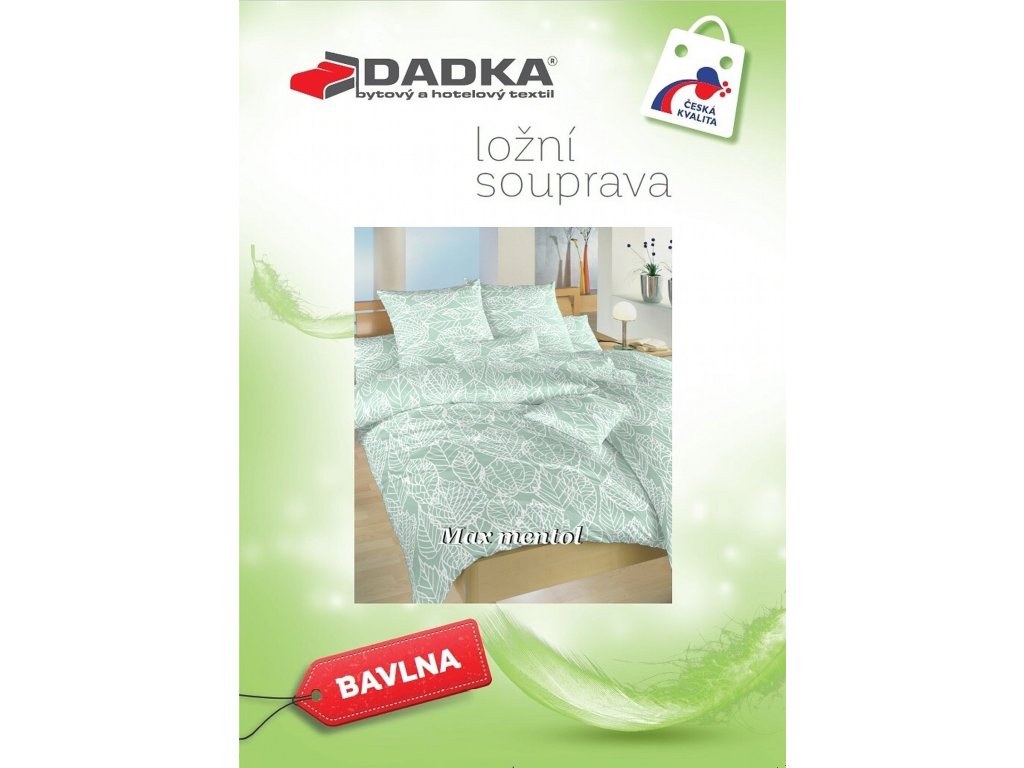Stylové ložní prádlo Max mentol s jemným listovým vzorem v bílé barvě na mentolovém podkladu přináší do ložnice svěží a přírodní atmosféru. Doporučujeme kombinovat s prostěradly v barvě bílá nebo mentolová. Vyrobeno v České republice firmou DADKA VRACOV.