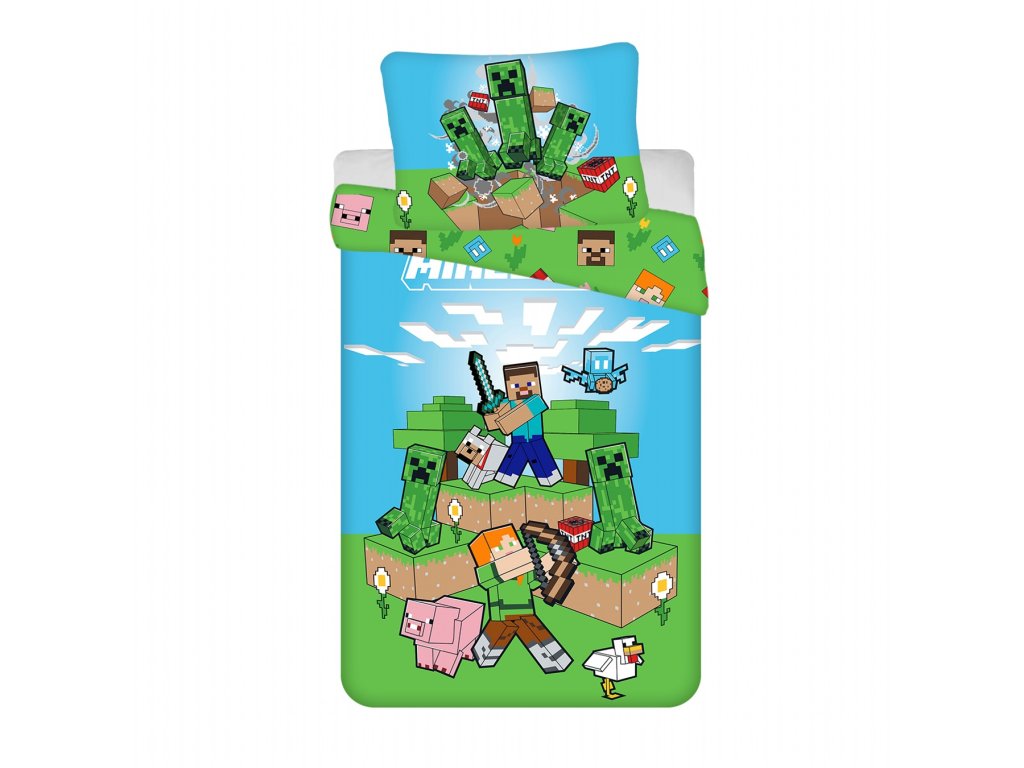 Povlečení bavlna Minecraft Outdoor Mobs 140x200, 70x90 cm