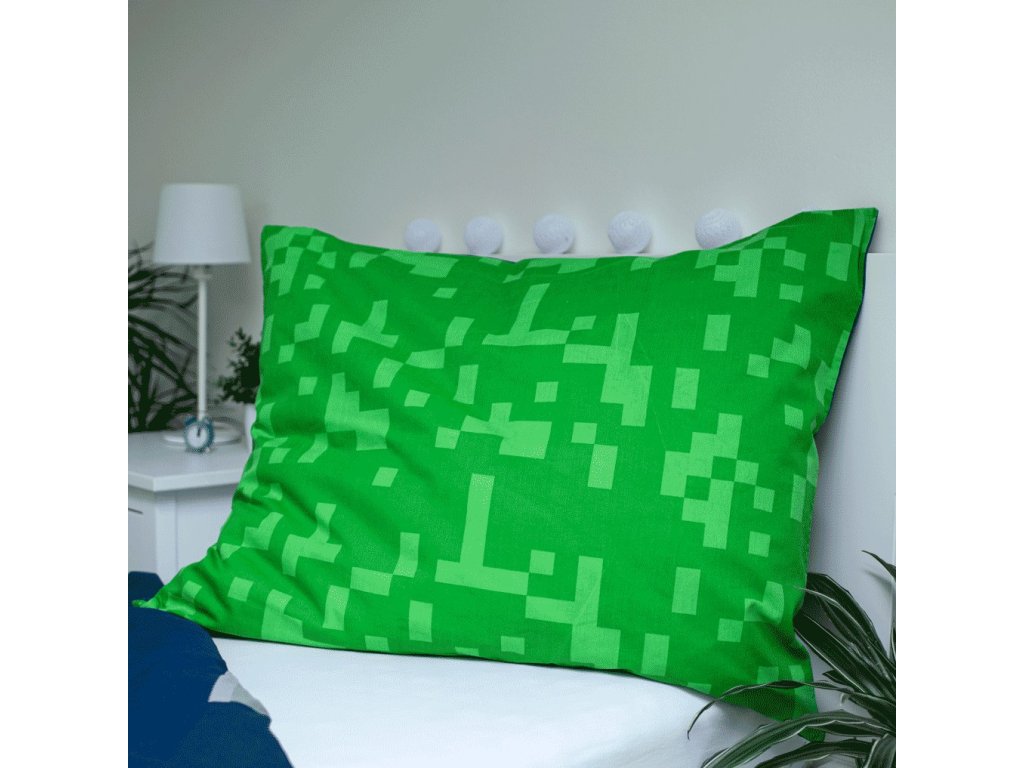 Usínejte s pocitem, že jste součástí Minecraft světa – pod hvězdami a s Creepery nablízku! Povlečení Minecraft Sssleep Tight přináší autentický herní zážitek přímo do postele. Přikrývku zdobí tři Creepeři stojící na typickém blokovém terénu s noční oblohou plnou hvězd a pixelovaných mraků. Polštář doplňuje tmavě modrý motiv s měsícem a hvězdami, zatímco druhá strana přikrývky nabízí zelený pixelový vzor připomínající herní textury.