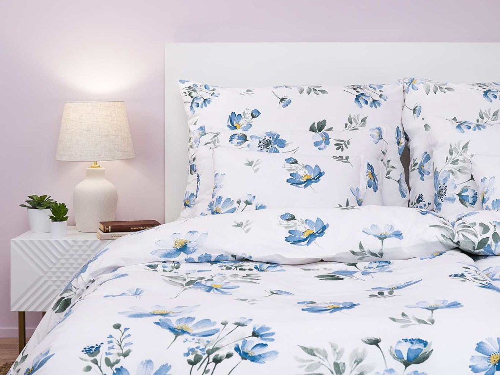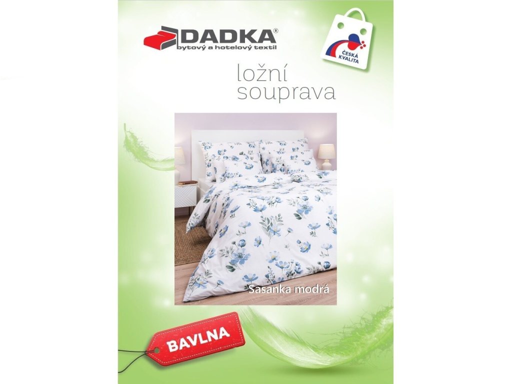 Elegantní ložní prádlo Sasanka modrá s jemným květinovým motivem v modrých tónech na bílém podkladu přináší do ložnice svěží a klidnou atmosféru. Nejlépe vynikne v kombinaci s prostěradlem v barvě světle šedá, denim nebo bílá. Vyrobeno v České republice firmou DADKA VRACOV.