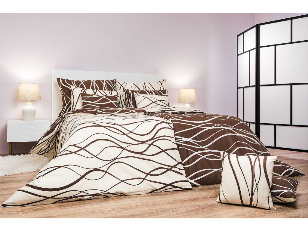 Povlečení bavlna Vlny banánové/hnědé DUO 220x200, 2x70x90 cm