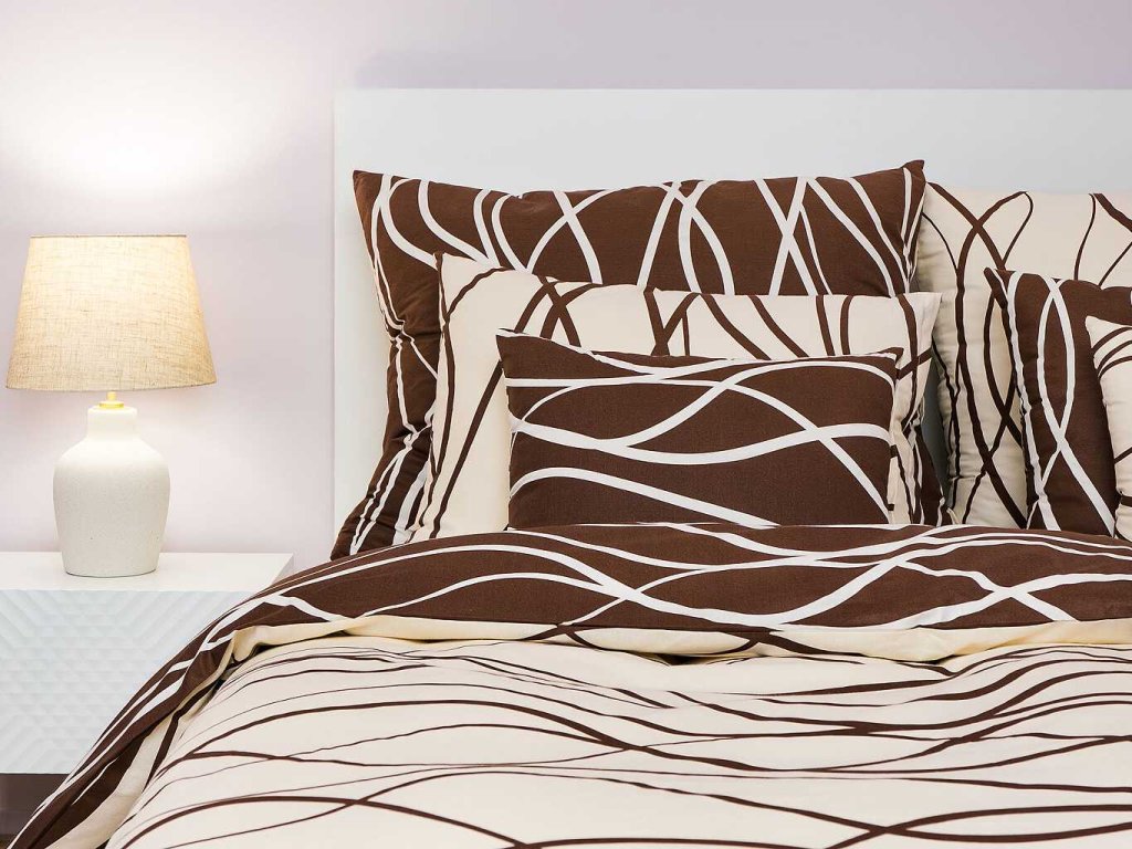 Povlečení bavlna Vlny banánové/hnědé DUO 240x200, 2x70x90 cm