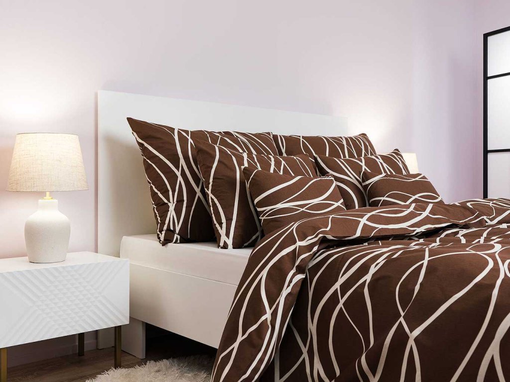 Elegantní ložní prádlo Vlny banánové na tmavě hnědém zaujme svým kontrastním designem – tmavě hnědý podklad s jemnými vlnkami v banánové barvě vytváří moderní a zároveň klidný vzhled. Povlečení doporučujeme kombinovat s prostěradly v barvě banánová nebo tmavě hnědá. Vyrobeno v České republice firmou DADKA VRACOV.