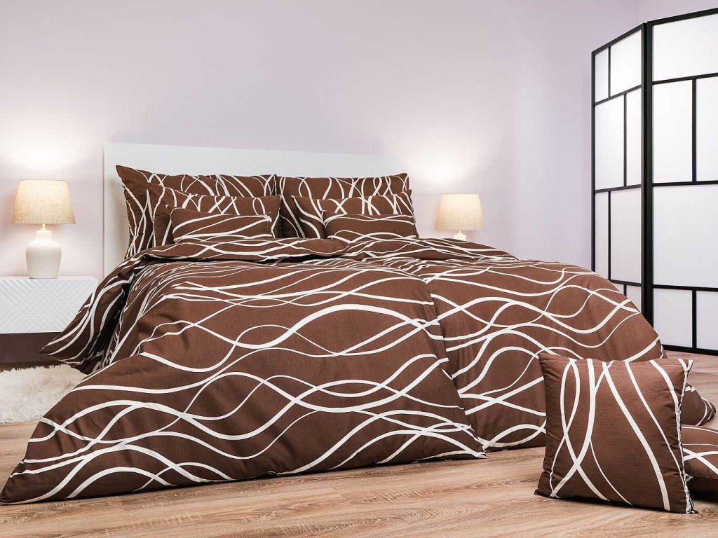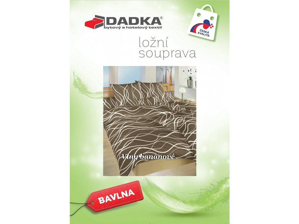 Elegantní ložní prádlo Vlny banánové na tmavě hnědém zaujme svým kontrastním designem – tmavě hnědý podklad s jemnými vlnkami v banánové barvě vytváří moderní a zároveň klidný vzhled. Povlečení doporučujeme kombinovat s prostěradly v barvě banánová nebo tmavě hnědá. Vyrobeno v České republice firmou DADKA VRACOV.