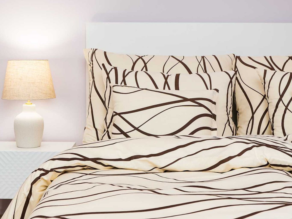 Elegantní ložní prádlo Vlny hnědé na banánovém zaujme svým jemným a přírodním vzhledem – banánový podklad s hnědými vlnkami vytváří klidnou a harmonickou atmosféru. Povlečení doporučujeme kombinovat s prostěradly v barvě banánová nebo tmavě hnědá. Vyrobeno v České republice firmou DADKA VRACOV.