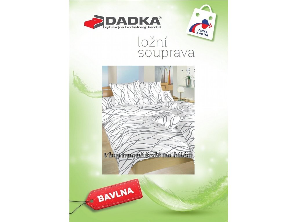 Moderní ložní prádlo Vlny tmavě šedé na bílém zaujme svým čistým a elegantním vzhledem – bílý podklad s jemnými tmavě šedými vlnkami vytváří klidnou a nadčasovou atmosféru. Povlečení doporučujeme kombinovat s prostěradly v barvě bílá nebo tmavě šedá. Vyrobeno v České republice firmou DADKA VRACOV.