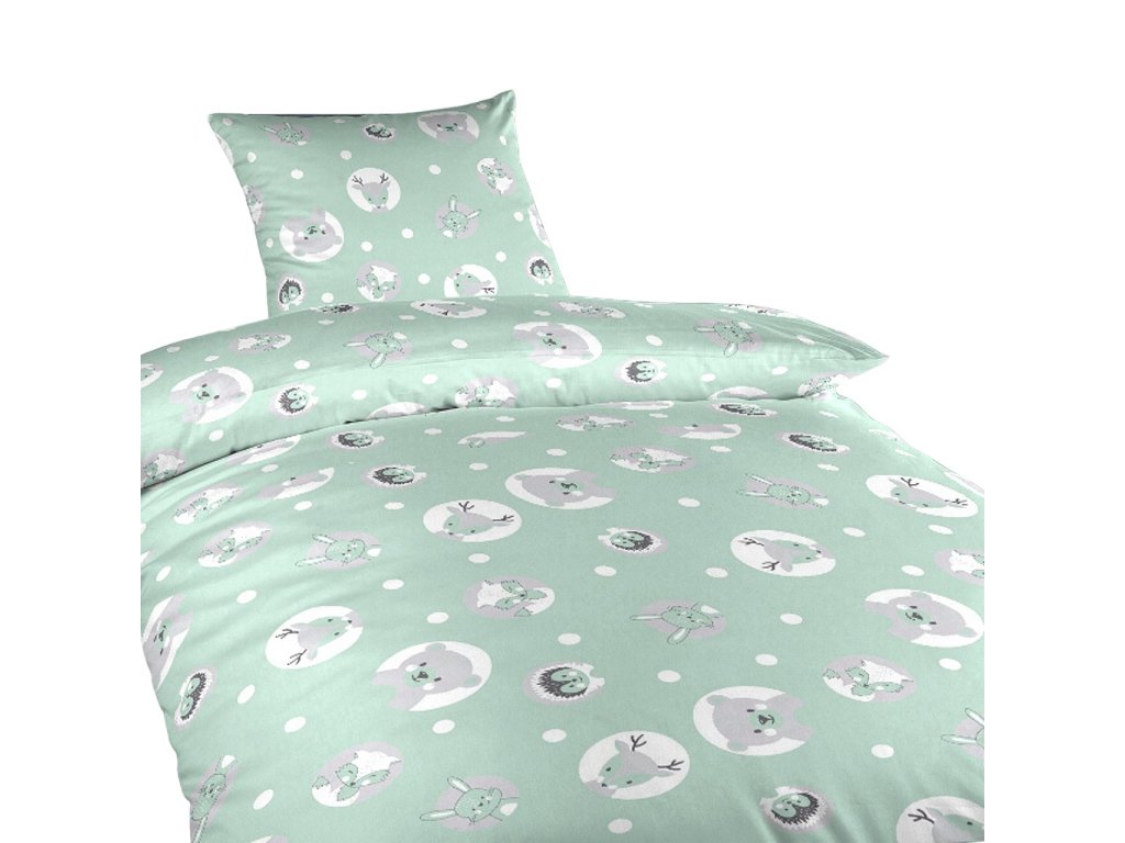 Povlečení bavlna Zvířátka mentolová 140x200, 70x90 cm