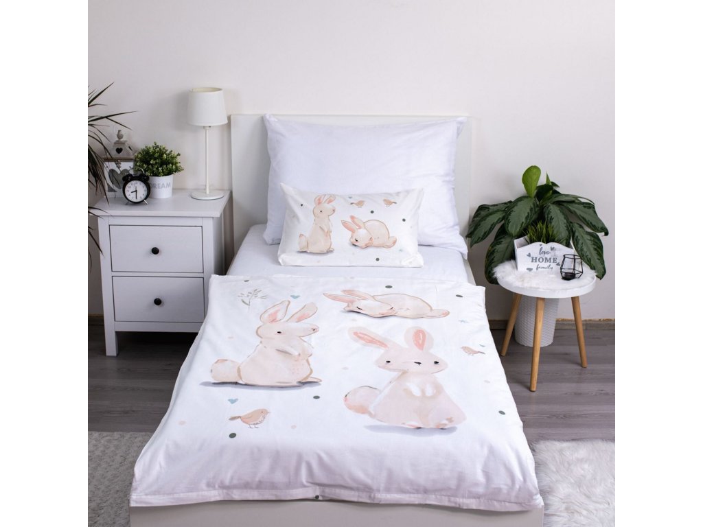 Skvělý dárek pro malé milovníky zvířátek – povlečení Králíčci baby přinese do dětského pokojíčku klid, pohodlí a roztomilou společnost králíčků.
