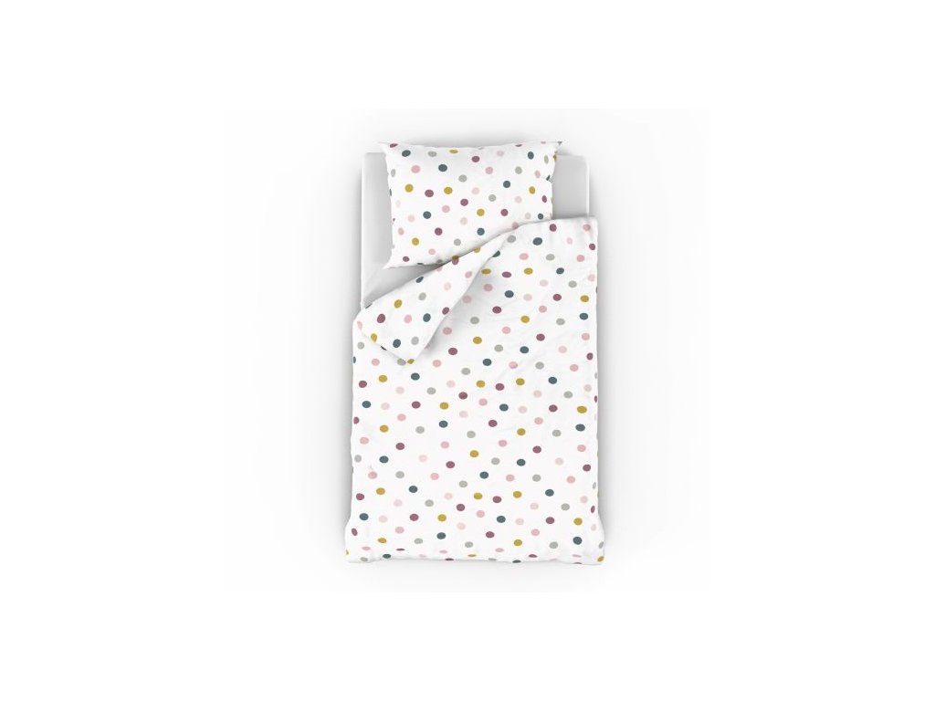 Když povlečení pro nejmenší, tak jedině bavlněné a příjemné, které zajistí pohodlný a kvalitní spánek. Dětské povlečení je vyrobeno z velmi jemné tkaniny s vysokou hustotou jemných přízí. Bavlněné povlečení Kuličky na bílém přenese Vaše zlatíčko do světa různě barevných míčků. Kombinace puntíků v pastelových barvách na čistě bílém podkladu ozdobí každý holčičí pokojíček.
