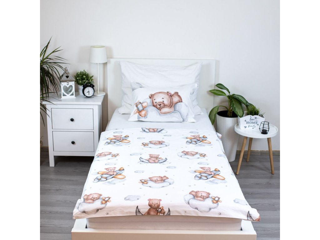 Skvělý dárek pro miminka a batolata – povlečení Medvídek Plane baby přinese do dětského pokojíčku radost, pohodlí a hravou atmosféru pro klidné usínání.