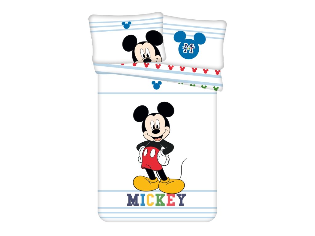 Povlečení je vyrobeno z kvalitního a měkkého materiálu, který zajišťuje pohodlný a klidný spánek. Design povlečení zahrnuje velký obrázek Mickey Mouse v jeho typickém červeném oblečení na bílém pozadí, doplněný o barevné pruhy a malé motivy Mickeyho hlavy. Polštář má také obrázek Mickey Mouse a modrý motiv s písmenem „M“. Toto povlečení přinese radost a kouzlo Disneyho světa do každé dětské postýlky.