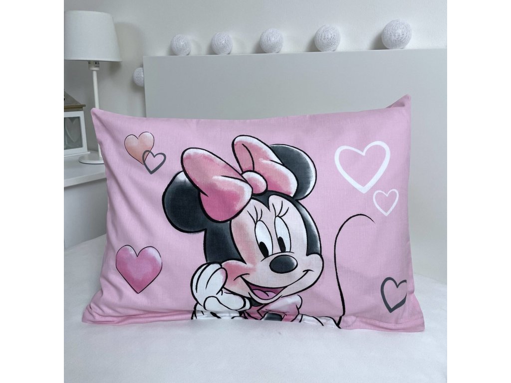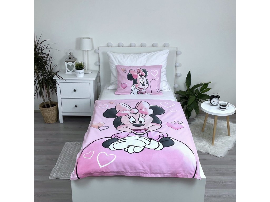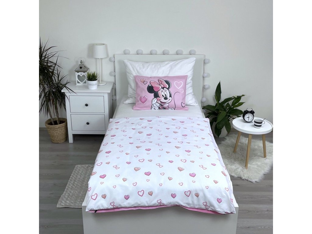 Dětské povlečení do postýlky Minnie Powder Pink – Roztomilý svět srdíček a Minnie