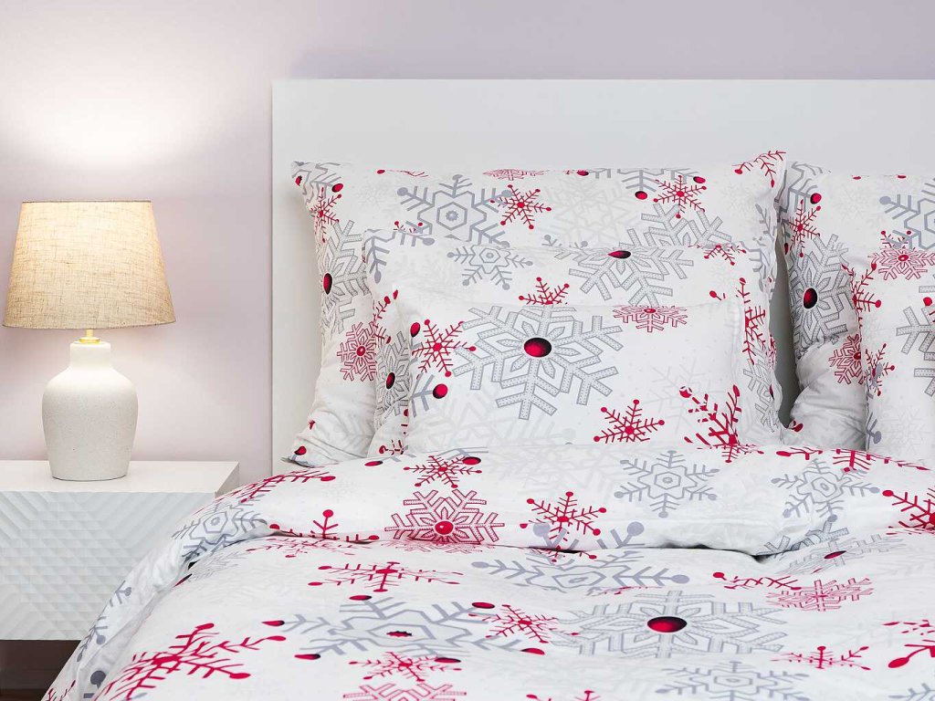 Obsah balení: 1x polštář o rozměru 70x90 cm a 1x povlak na přikrývku o rozměru 140x240 cm.Dezén: Vločky šedé.