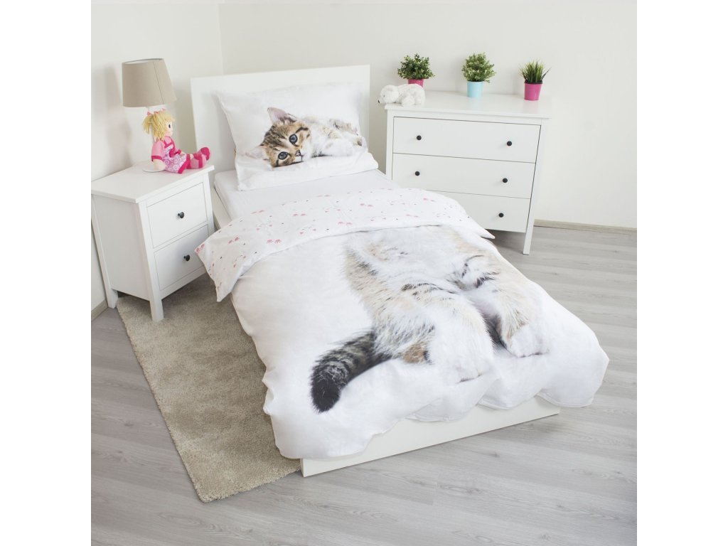Skvělý dárek pro malé i velké milovníky koček – povlečení Koťátko přinese do vaší ložnice radost, pohodlí a roztomilou atmosféru!