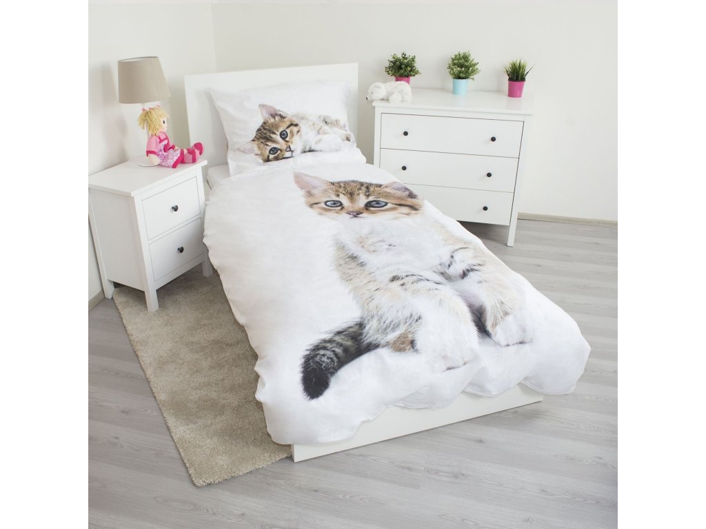 Povlečení fototisk Kitten white 140x200, 70x90 cm