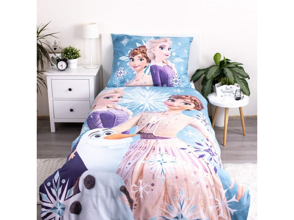 Vneste kouzlo zimního království do dětského pokoje s povlečením Frozen White Snowflake! Design s Elsou, Annou a Olafem na modrém pozadí s bílými sněhovými vločkami přináší pohádkovou atmosféru plnou ledu, magie a přátelství.