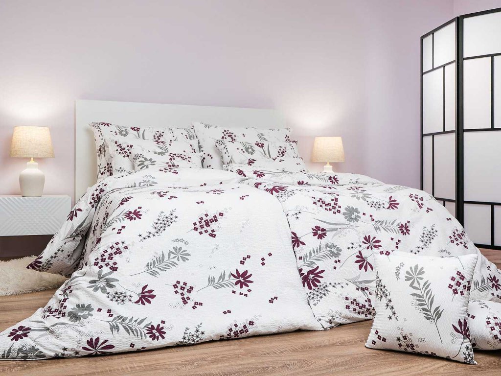 Povlečení krep Agáta vínová na bílém 140x200, 70x90 cm