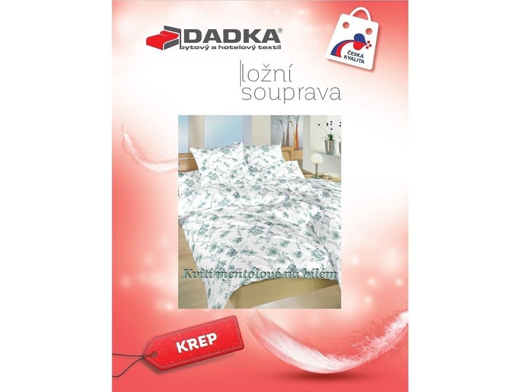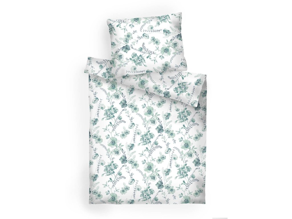 Povlečení krep Kvítí mentolové na bílém 140x200, 70x90 cm
