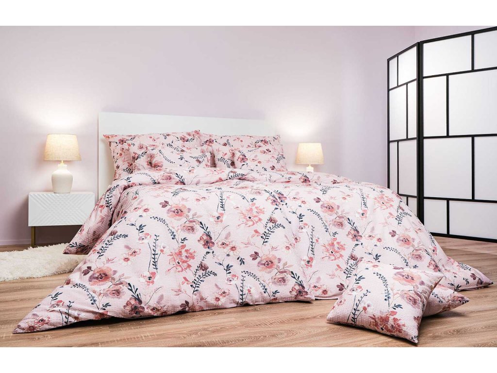 Obsah balení: 1x polštář o rozměru 70x90 cm a 1x povlak na přikrývku o rozměru 140x200 cm.Dezén: Kvítí na pudrovém.