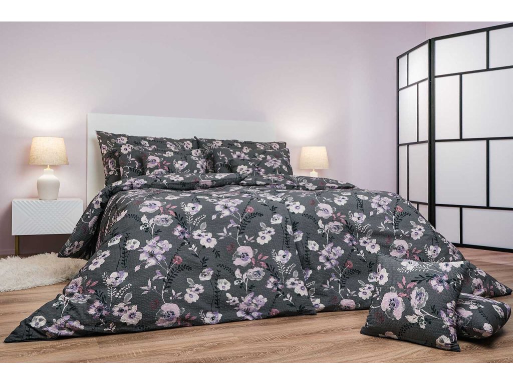 Povlečení krep Kvítí na šedém 200x200, 2x70x90 cm