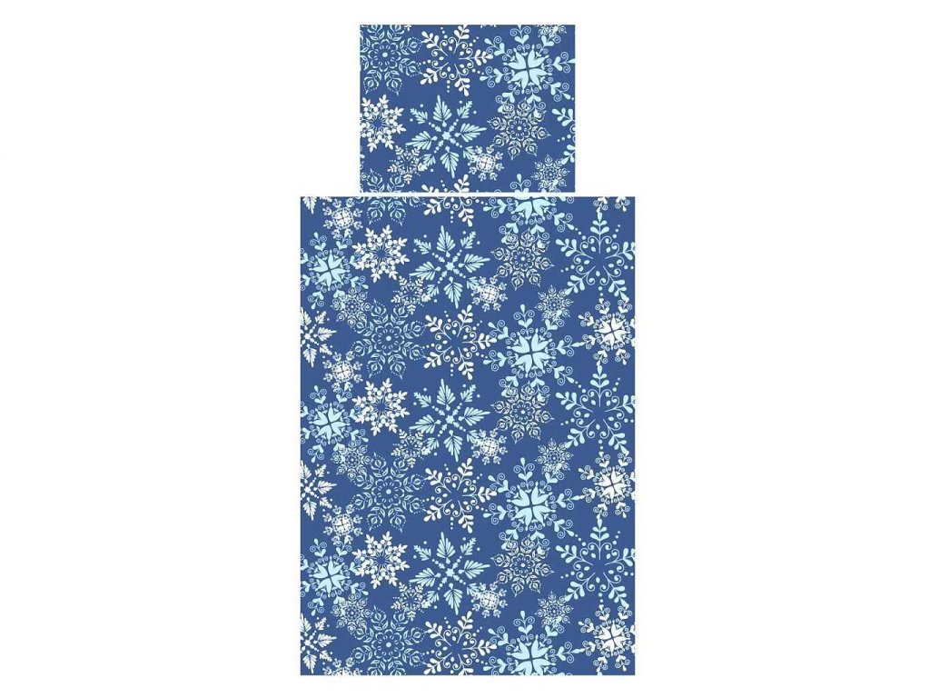 Povlečení krep Snowflakes šedomodré 140x200, 70x90 cm