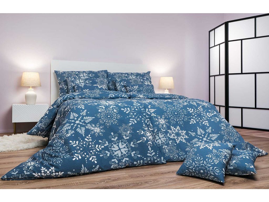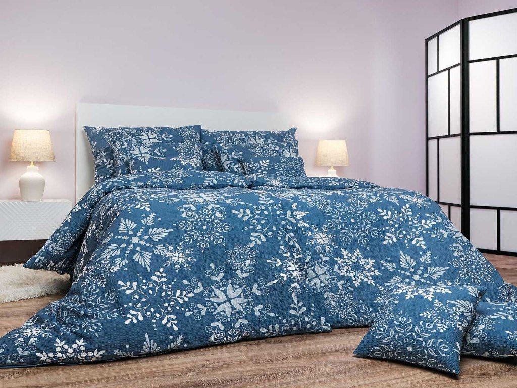 Povlečení krep Snowflakes šedomodré 200x200, 2x70x90 cm