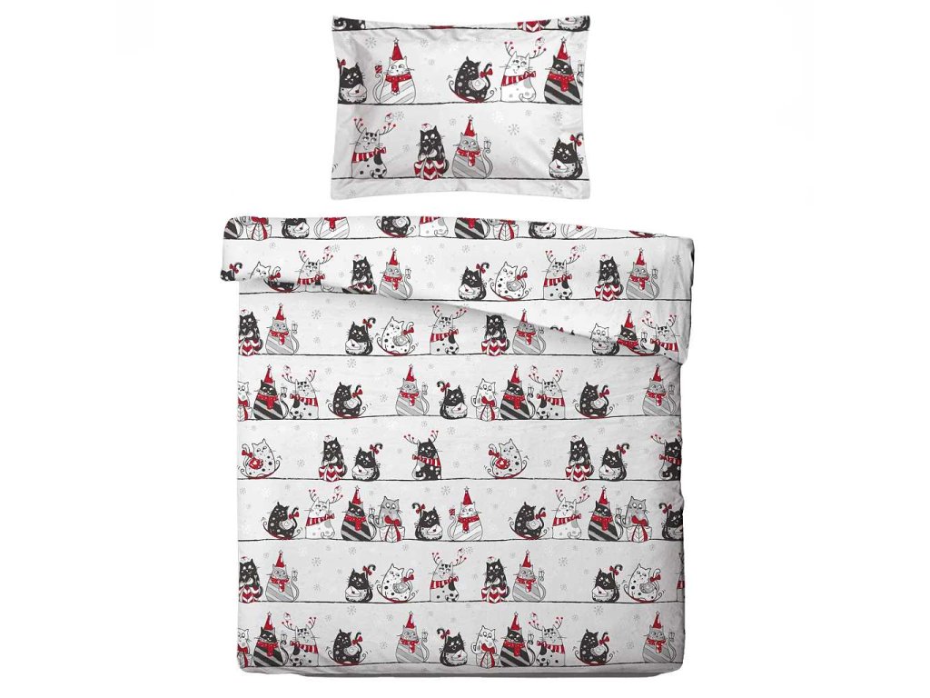 Povlečení Mikroflanel Kočky na střeše je ideálním dárkem pro milovníky koček a zimní pohody. Vnese do ložnice radost, teplo a sváteční náladu.