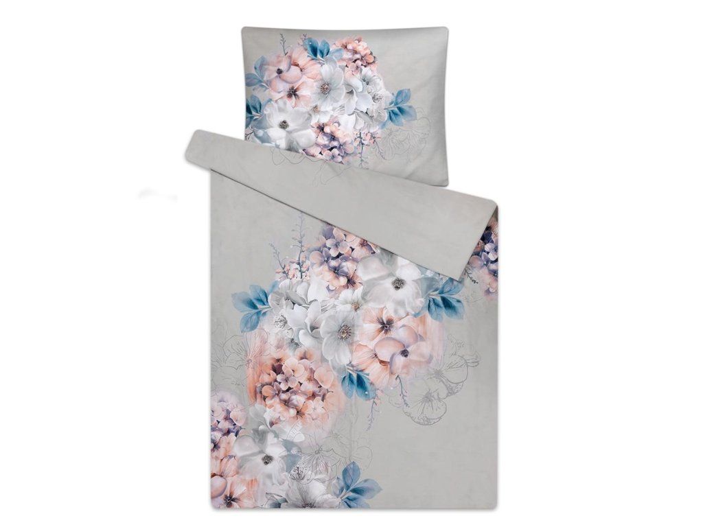 Elegantní povlečení Mikroflanel Sen značky SLEEP WELL® přináší do ložnice jemnost, teplo a romantický vzhled. Jemný šedý podklad s květinovým vzorem v odstínech bílé, růžové a modré působí velmi vkusně a harmonicky.