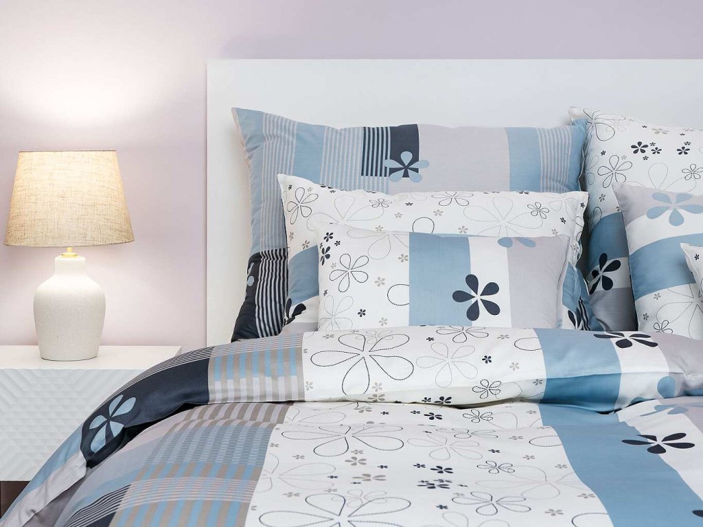 Povlečení satén Flér šedomodrá 140x220, 70x90 cm