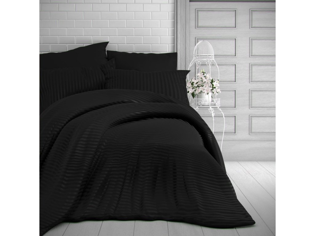 Povlečení satén Luxury collection proužek černý 140x200, 70x90 cm