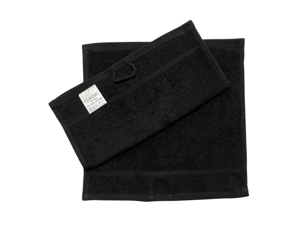 Elegantní černý ručník Sofie v rozměru 30×30 cm je skvělým doplňkem do každé domácnosti i provozu. Díky kompaktním rozměrům je ideální jako ručník na obličej, pro hosty nebo do kosmetických salónů. Vyrobený je ze 100% bavlny s gramáží 400 g/m², což mu dodává vysokou savost a mimořádnou hebkost. Praktické poutko zajišťuje snadné zavěšení, a tak se ručník vždy rychle usuší. Černá barva působí luxusně, moderně a zároveň je velmi praktická na údržbu.